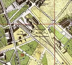 Anschließend wurde ohne Zögern mit dem Bau der Trasse nach Taucha und weiter nach Eilenburg begonnen. Die Eisenbahngesellschaft erwarb ein etwa 10 ha großes Betriebsgrundstück, das sich im Vergleich zu den anderen Leipziger Bahnhöfen weit außerhalb des Stadtzentrums in der damals noch selbständigen Gemeinde Reudnitz befand. Das etwa 900 m lange und 150 m breite Bahnhofsgelände wurde von der Eilenburger Straße, der Nostitzstraße (heute Reichpietschstraße), der Riebeckstraße und dem Gerichtsweg begrenzt. Am 1. November 1874 wurde der Bahnverkehr zwischen Leipzig und Eilenburg eröffnet.