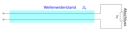 gerade den Bruchteil der einlaufenden Welle an, der am Ende der Leitung reflektiert wurde. Man nennt daher die Reflektivität der Leitung. Man beachte dabei, dass die Amplitude der Welle mit Wellenvektor , also die Amplitude der hinlaufenden Welle ist und die Amplitude der Welle mit Wellenvektor , also der rücklaufenden Welle darstellt. Man kann nun zeigen, dass die Reflektivität einer mit einem komplexen Widerstand abgeschlossenen Leitung (Abbildung 2) über