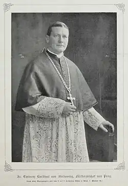 Auf Wunsch der Wiener Regierung wurde er 1916 vom Olmützer Domkapitel zum Nachfolger des verstorbenen Erzbischofs und Kardinals Franziskus von Sales Bauer gewählt und im selben Jahr mit Zustimmung des Papstes nach Olmütz versetzt.[2] Nach der Errichtung der Tschechoslowakei 1918 fand er als österreichisch gesinnter Bischof auch in Olmütz wenig Zustimmung. Wohl deshalb resignierte er 1920 auf sein Amt. Nach seinem Tod 1938 auf Schloss Dlouhá Loučka wurde er im Wenzelsdom, der Olmützer Kathedrale, beigesetzt. Er war seit 1928 Kardinalprotopriester und bei seinem Tod der letzte verbliebene Kardinal, der von Papst Leo XIII. kreiert worden war.
