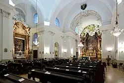 In der Sakristei befinden sich barocke Schränke mit Intarsien und Gemälden aus der ersten Hälfte des 19. Jahrhunderts zu den Themen Vermählung Mariä und Taufe Jesu. Ein Raum auf der gegenüberliegenden Seite ist ähnlich der Sakristei gestaltet. Über den Portalen zu beiden Räumen sind kreisrunde, vergoldete Darstellungen der Heiligen Petrus (links) und Paulus (rechts) angebracht.