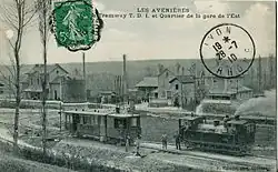 Der Bahnhof Les Avenières-Veyrens lag an der regelspurigen Bahnstrecke von Lyon nach Saint-Genix-sur-Guiers, die 1881 von den Chemins de fer de l’Est de Lyon eröffnet wurde. 1947 wurde deren Personenverkehr eingestellt, 1956 endete auch der Güterverkehr. Von Les Avenières führte zudem eine meterspurige Schmalspurbahn der Tramways de l’Ouest du Dauphiné nach La Tour-du-Pin, die von 1909 bis 1935 bestand.