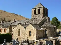 - Die Pfarrkirche (Église Saint-Saturnin) ist ein spätromanischer Bau aus Haustein mit einem Glockenturm auf der Nordseite.