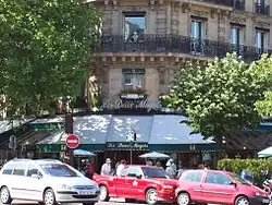 Das Café Les Deux Magots, dessen „zwei Händler“ als hölzerne, fast lebensgroße und aufwendig gestaltete chinesische Sitzfiguren den Gastraum des Cafés schmücken, war 1812 ursprünglich eine Handelsniederlassung für fernöstliche, vorwiegend chinesische Kunstgewerbeartikel. Sie zog 1873 aus Platzgründen von der Rue de Buci 23 an den Saint-Germain-des-Prés-Platz 6. Aus dieser Zeit stammen auch die beiden erwähnten Sitzfiguren. Um 1885 wurde das Lager unter Beibehaltung des Firmenemblems in ein Café und Likörlokal mit dem Namen Aux Deux Magots umgewandelt. Dichter und Schriftsteller dieser Zeit wie Paul Verlaine, Arthur Rimbaud, Stéphane Mallarmé, Oscar Wilde und andere trafen sich dort und gaben dem Lokal seine erste Berühmtheit. Der Ruf des Deux Magots setzte sich durch surrealistische Künstler wie André Breton fort, die es als ihren Treffpunkt ausersahen, später auch durch Intellektuelle wie André Gide, Jean Giraudoux, Simone de Beauvoir und Jean-Paul Sartre und bildende Künstler wie Fernand Léger, die hier häufig anzutreffen waren. Oft zu Gast waren unter anderen Ernest Hemingway, Albert Camus und der Maler Pablo Picasso, später auch der Regisseur François Truffaut, der Gitarrist Bob Welch und der italienische Schriftsteller und Philosoph Umberto Eco.