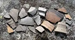 Im Bereich der Schwäbischen Alb werden hauptsächlich zwei Arten von Keramik gefunden: Die gelbtonige ältere Drehscheibenware bezeichnet eine hochwertige Keramik, die sich chronologisch nach der Randform in die Subtypen Runder Berg (9. bis 11. Jahrhundert) und Jagstfeld (11. und 12. Jahrhundert) aufteilen lässt. Alltagsgeschirr war die eher unscheinbare Albware, die eine geringe Qualität aufwies. Sie wird nach Gefäß- und Randform in die Phasen alt (ca. 1050–1150), mittel (1150–1220) und jung (bis ins 14. Jahrhundert) unterteilt, deren Dauer im Gegensatz zur Abfolge als nicht gesichert gilt.