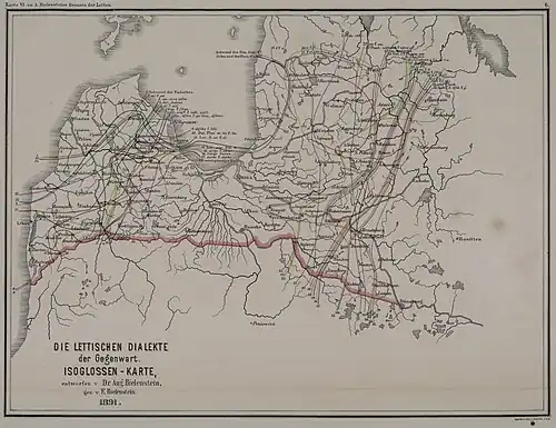 - ↑ Die lettischen Dialekte der Gegenwart. Isoglossen-Karte. In: Bielenstein (1892 / 1973)
