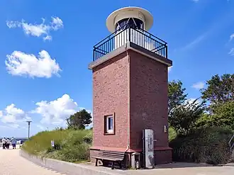 Anstelle einer 1892 errichteten Leuchtbake wurde im Jahr 1952 der heutige Turm erbaut. Er besitzt eine Höhe von etwa acht Metern; die Feuerhöhe befindet sich 10 Meter über MThw. Der Turm besitzt einen annähernd quadratischen Grundriss und besteht aus massivem Mauerbau, der mit einer rot-braunen Klinkerfassade verkleidet ist.[1][2] Über der begehbaren Plattform erhebt sich die aus Metall bestehende und weiß lackierte Laterne mit der Optik. Der seit 1980 ferngesteuerte Turm besitzt die Funktion eines Quermarkenfeuers und dient der Navigation der Schifffahrt in der Norderaue zwischen dem Festlandshafen Dagebüll und den Inseln Föhr und Amrum. Er ist daher ein Seezeichen und stellt (aufgrund seiner eher geringen Höhe) eingeschränkt auch eine Landmarke auf der Insel dar.