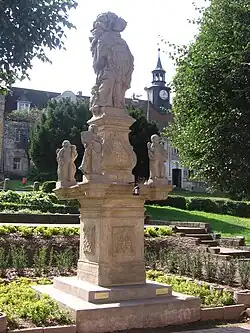 - Die Statue mit dem böhmischen Landesheiligen Johannes Nepomuk stiftete Johann Georg Stanke, Sohn des Adam Stanke, 1717.