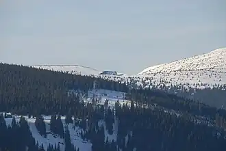 Nordöstlich des Gipfels steht an der Bergstation der Sesselbahn Hnědý Vrch (Braunberg) auf 1207 m der höchstgelegene Aussichtsturm im Riesengebirge. Die Aussichtsplattform befindet sich in 27 Meter Höhe, ist zudem gebührenfrei und bietet einen der schönsten Ausblicke auf Schneekoppe, Studniční hora (Brunnberg) und ins Tal von Pec pod Sněžkou.[3]
