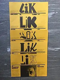 Anfang der 1970er Jahre plante der damalige Direktor Horst-Johannes Tümmers eine „kleine wanderausstellung kölner autoren“[1] in den Zweigstellen der Stadtbibliothek. Die Stadtbibliothek Köln war damals ein System von Büchereien: 19 Zweigstellen, 5 Sonderbüchereien, 4 Autobüchereien mit 57 Haltepunkten und eine zentrale Verwaltung.[2]Helmut Schmidt Rhen, seit 1971 mit der Entwicklung eines neuen visuellen Erscheinungsbildes für die Stadtbücherei Köln beauftragt, schlug dem Direktor statt einer Ausstellung eine „wandzeitung“ vor, ein gedrucktes Medium, das auch für Autoren attraktiv sein würde. Schmidt Rhen rückblickend über LiK: „so entstand LiK – ein vitaler medienverbund – inzwischen eine bibliophile rarität.“