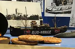 Die echte Aud wurde wie ihr Alias ebenfalls ein Opfer des Ersten Weltkriegs. Sie wurde am 30. November 1916 unter Kapitän Andreas Stehen aus Bergen von UB 18 unter Kapitänleutnant Claus Lafrenz auf einem Kohlentransport von Cardiff nach Lissabon nördlich von Cornwall gestoppt und untersucht. Lafrenz erklärte die Ladung für Konterbande; die Besatzung musste daraufhin in den Rettungsbooten das Schiff verlassen. Die Aud wurde mit Sprengpatronen gesprengt und zur Beschleunigung des Untergangs unter Geschützfeuer genommen. Sie sank neun Seemeilen nordwestlich des Godrevy Lighthouse. Ihre Besatzung wurde kurz darauf von dem spanischen Dampfer Alu Mendi unter Kapitän J. De Foran aus Bilbao aufgenommen, der ebenfalls von UB 18 angehalten, aber wieder entlassen worden war, und kehrte wohlbehalten nach Norwegen zurück.