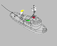 [24a (v)] Wenn der Schleppzug länger als 200 m ist, muss ein rhombusförmiger Signalkörper dort geführt werden, wo er am besten zu sehen ist. [24h und i] Schiffe, die üblicherweise nicht zum Schleppen eingesetzt werden, brauchen keine Schlepplichter zu führen, wenn ihnen das nicht mit vertretbarem Aufwand möglich ist. Dies gilt auch für Fälle, in denen Schiffe aus einer Notlage heraus geschleppt werden müssen. In solchen Fällen sollte versucht werden, das geschleppte Fahrzeug oder die Schleppleine möglichst gut zu beleuchten. |