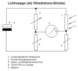 Die Lichtwaage ist eine Anwendung der Wheatstone’schen Widerstandsmessbrücke, die in der Elektrotechnik und Elektronik zu Steuerungs- und Regelungszwecken eingesetzt wird.