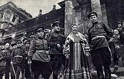 Lidija Ruslanowa war zu dieser Zeit eine der reichsten Frauen der Sowjetunion und finanzierte den Bau zweier Katjuscha-Raketenwerfer, die sie der Roten Armee 1942 präsentierte. Im selben Jahr wurde sie als „Volkskünstler der RSFSR“ ausgezeichnet. Nach der Schlacht um Berlin trat sie auf der Treppe des zerstörten Reichstagsgebäudes vor sowjetischen Soldaten auf.[1]:S. 93