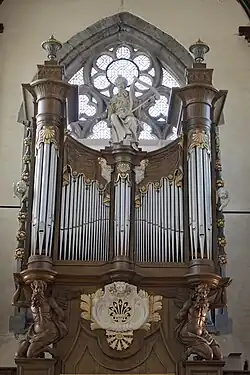 Die Orgel ist ursprünglich ein Werk von Pieter van Peteghem von 1740 in einem Orgelgehäuse von P. Meyns; das Werk wurde 1966 von Georges Delmotte restauriert und hat heute 22 Register auf zwei Manualen und Pedal.[2] Das reich verzierte, in die Empore eingebaute Orgelgehäuse ist mit dem harfespielenden König David sowie mit Satyrn und Cherubim geschmückt. Der Kreuzweg wurde von Aloïs De Beule 1925 gearbeitet. Das Taufbecken ist mit steinernen, spätgotischen Elementen (15. oder 16. Jahrhundert?) und Kupferdeckel mit bekrönender Skulpturengruppe (18. Jahrhundert) versehen; die Taufkapelle ist durch ein geschnitztes Holzportal aus dem 18. Jahrhundert abgeschlossen.