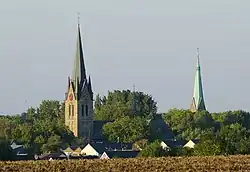 - ↑ Bis zur Spitze des Kirchturmdaches sind es 59,30 Meter, bis über Kreuz und Hahn 62,89 Meter. Früher wurde eine Höhe von 67 Meter angenommen. (Quelle: Kirchenführer zum 100-jährigen Jubiläum des Kirchenbaus, Holzwickede 2004)