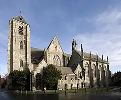Die Kirche wurde gegründet als Stiftskirche und ist Pfarrkirche seit 1797. Das Bauwerk ist eine geostete Basilika mit Querhaus. Sie geht zurück auf ein erstes Gotteshaus, das zwischen dem Ende des 12. und dem Beginn des 13. Jahrhunderts im Bereich der gräflichen Burg von Baudouin IX. errichtet wurde, nachdem er versprochen hatte, eine Stiftskirche, eine Capella mit Chor, zu errichten. Im dritten Viertel des 13. Jahrhunderts wurde das Querschiff angebaut.[1]