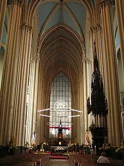 Leopold II. ließ die Kirche schließlich vollenden. Der Münchner Architekt Heinrich von Schmidt entwarf das Portal und den 99 m hohen Turm für die Westfassade.