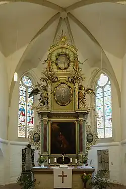 Der Marienaltar wurde 1710 auf herzogliche Anordnung durch den bis heute vorhandenen Barockaltar ersetzt. Dieser zeigt das für diese Zeit und in dieser Region übliche Bildprogramm: In der Predella das Letzte Abendmahl Jesu mit seinen Jüngern, darüber die Abbildung einer Szene aus der Passionsgeschichte, hier Jesu Gebet im Garten Getsemani, die von Säulen flankiert ist. Eingerahmt von Palmen und flankiert von Engeln mit Leidenswerkzeugen befindet sich darüber die Auferweckung Christi, darüber durch Wolken schauend das „Gottesauge“ als Zeichen der Gegenwart Gottes und im Strahlenkranz das Dreieck als Symbol der Dreifaltigkeit Gottes. Gekrönt wird der Altar von einer Gloriole. Im Dreieck ist das Christusmonogramm XP (griechisch Chi und Rho) zu sehen und das griechische Alpha und Omega für Anfang und Ende (erster und letzter Buchstabe des griechischen Alphabets).