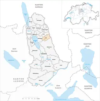 Die Ortschaft liegt am Westhang des Lindenbergs – ungefähr 4,5 km nördlich von Hochdorf im luzernischen Teil des Seetals. Das Dorf wird vom Scheidbach durchflossen, welcher in den Baldeggersee mündet. Nebst der Hauptsiedlung liegen noch zwei Häusergruppen auf dem ehemaligen Gemeindegebiet, nämlich Burghof (720 m ü. M.) und Berghof (784 m ü. M.). Gleich oberhalb des Dorfs liegt die Ruine der Burg Nünegg. Vom Dorfgebiet wird der Grossteil von 68,6 % landwirtschaftlich genutzt. 27,6 % sind mit Wald und Gehölz bedeckt und bloss 3,8 % Siedlungsfläche.