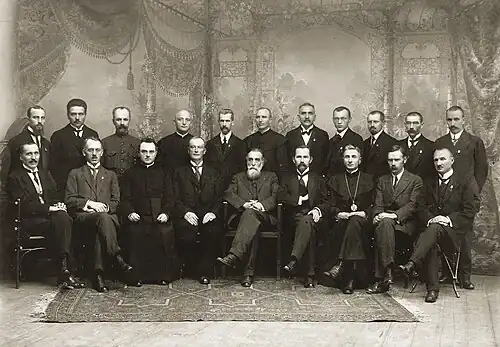Der gewählte 20-köpfige Staatsrat kam am 24. September 1917 zu seiner ersten Sitzung zusammen. Er bestand aus acht Juristen, vier Priestern, drei Agronomen, zwei Bankiers sowie je einem Arzt, Publizist und Ingenieur. Er sollte damit möglichst breit die gesellschaftlichen Schichten und die politischen Strömungen abdecken. Auf Protest der Sozialdemokraten über ihre mangelnde Repräsentanz wurden im Verlauf des Jahres 1917 zwei Priester durch zwei sozialdemokratische Parteigänger ersetzt. Zum Vorsitzenden des Gremiums wählten die Mitglieder Antanas Smetona.