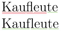 Unten: korrekt ohne Ligatur („Kauf·leute“).