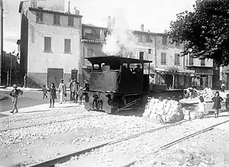 Neben Güterzügen waren täglich zunächst fünf Personenzugpaare auf der Strecke unterwegs, zum Einsatz kamen anfangs zweiachsige Tenderlokomotiven. Die örtliche Werft sorgte für ein wachsendes Verkehrsaufkommen, sodass 1914 bereits sieben Zugpaare eingesetzt wurden.[4] Die Fahrzeit auf der eingleisigen Strecke betrug 15 Minuten. Um den Personenverkehr nicht zu behindern, verkehrten die Güterzüge vor Tagesanbruch.[5] Im Jahr 1913 übernahm das Département selbst in Form einer Régie den Betrieb.[3] Eine während des Ersten Weltkriegs längs des Hafenkais angelegte Zweigstrecke im Stadtviertel L’Escalet verbesserte die Bedienung der Werft. Im Straßenbereich wurden dort Broca-Rillenschienen verlegt.[6] Die 1835 gegründete Werft erhielt ein separates Gleisnetz und verfügte über eigene Lokomotiven für den internen Verkehr, zuletzt zwei Kleindieselloks von CEM und Fauvet-Girel.[5]
