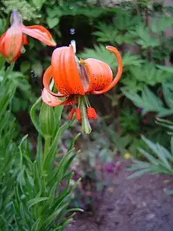 • Lilium pyrenaicum f. rubrum Stoker: Mit roter Blüte.