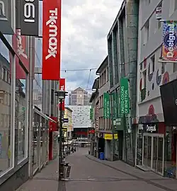Die Limbecker Straße ist eine zentrale Einkaufsstraße in der Essener Innenstadt. Sie wurde 1927 als erste Straße Deutschlands zur fahrverkehrsfreien Einkaufsstraße umgestaltet.[1]