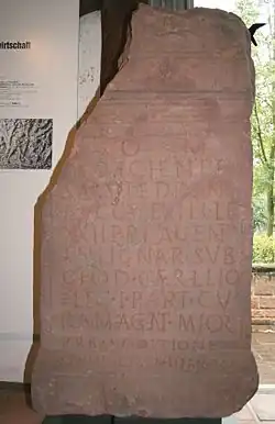 - ↑ CIL 13, 6562. Vgl. A. Thiel in: Fundbericht aus Baden-Württemberg 20, 1995, S. 731–732 (AE 1995, 1166).