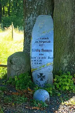 Am 14. April 1945 stürzte ein deutsches Militärflugzeug (Messerschmitt Bf 109) nahe dem Ort ab. Der Überlieferung nach soll der Pilot das bereits brennende Flugzeug noch über dem Ort hochgezogen haben, um die Bewohner zu schützen. Von diesem Ereignis zeugt ein Denkmal mit einem Wrackteil.
