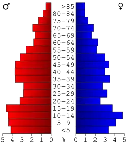 30,4 Prozent der Bevölkerung waren unter 18 Jahre alt, 9,0 Prozent zwischen 18 und 24 Jahre, 25,5 Prozent zwischen 25 und 44 Jahre, 22,0 Prozent zwischen 45 und 64 Jahre. 13,1 Prozent waren 65 Jahre oder älter. Das Durchschnittsalter betrug 34 Jahre. Auf 100 weibliche Personen kamen 106,5 männliche Personen. Auf 100 Frauen im Alter von 18 Jahren und darüber kamen 105,8 Männer.
