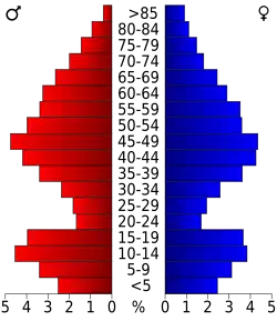 Auf das gesamte County bezogen setzte sich die Bevölkerung zusammen aus 25,30 % Einwohnern unter 18 Jahren, 5,50 % zwischen 18 und 24 Jahren, 24,20 % zwischen 25 und 44 Jahren, 29,70 % zwischen 45 und 64 Jahren und 15,20 % waren 65 Jahre alt oder darüber. Das Durchschnittsalter betrug 42 Jahre. Auf 100 weibliche Personen kamen 102,70 männliche Personen, auf 100 Frauen im Alter ab 18 Jahren kamen statistisch 100,50 Männer.