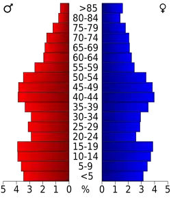 Auf das gesamte County bezogen setzte sich die Bevölkerung zusammen aus 26,2 Prozent Einwohnern unter 18 Jahren, 8,3 Prozent zwischen 18 und 24 Jahren, 26,6 Prozent zwischen 25 und 44 Jahren, 23,8 Prozent zwischen 45 und 64 Jahren und 15,1 Prozent waren 65 Jahre alt oder darüber. Das Durchschnittsalter betrug 38 Jahre. Auf 100 weibliche Personen kamen 96,5 männliche Personen. Auf 100 Frauen im Alter von 18 Jahren oder darüber kamen statistisch 93,4 Männer.