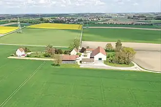 Die Einöde liegt vier Kilometer westlich des Hauptortes nahe der Staatsstraße 2051.