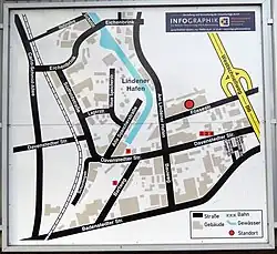 Anschluss über den Stichkanal Linden (rechts; links: Verbindungskanal zur Leine; Lage) -