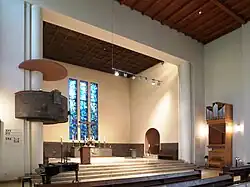 - der im rechten Winkel anschließenden Bau mit dem großen und kleinen Gemeindesaal und der darüberliegenden Kindertagesstätte,