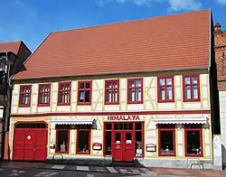 • Nr. 42: 2-gesch. klassizistisches Wohnhaus von 1802 (D), Eckhaus mit altem Speicherdach und Fachwerkfassade, 1920 umgebaut für Ladennutzung, längerer Leerstand, 2006/07 rekonstruiert und saniert auf Stand vor 1920