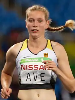 2016 kam Ave bei den IPC-Europameisterschaften in der Erwachsenenklasse in Grosseto (Italien) über 100 und 200 Meter jeweils auf den 5. und beim Weitsprung auf den 6. Platz. Bei den IWAS U23 World Games in Prag bestätigte Ave ihre Form und wurde sowohl Weltmeisterin über 100 als auch 200 Meter und belegte den 3. Platz im Weitsprung. Bei den Internationalen Deutschen Meisterschaften (IDM) in Berlin wurde sie Deutsche U20-Meisterin auf den 100 Metern, und Meisterin im Weitsprung. Über die 200 Meter belegte sie den 4. Platz. Schließlich wurde Ave als Teilnehmerin bei den Paralympischen Spielen in Rio de Janeiro nominiert, wo sie beim 100-Meter-Lauf in persönlicher Bestleistung von 13,20 s den 5. Platz[10] erreichte. Im Weitsprung verbesserte Ave ihre persönliche Bestleistung um 2 cm auf 4,47 m und belegte den 6. Platz.[11] In der 4-mal-100-Meter-Staffel mit Maria Seifert und Claudia sowie Nicole Nicoleitzik kam sie mit Saisonbestleistung auf den 4. Platz.