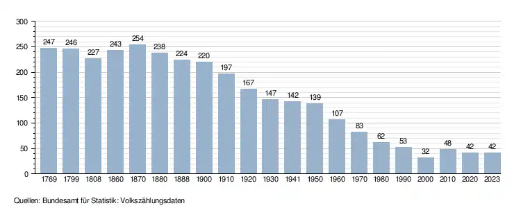 4. Ständige und nichtständige Wohnbevölkerung nach institutionellen Gliederungen, Staatsangehörigkeit (Kategorie), Geschlecht und Alter, 2010-2024. Bei späteren Gemeindefusionen Einwohnerzahlen aufgrund Stand 2024 zusammengefasst. Abruf am 28. August 2025