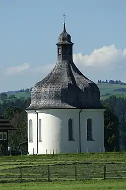 - Die Kapelle hl. Anna auf dem Felde aus dem Jahr 1722 zeigt einen reinen Barockstil. Die durch ihre einzigartige Grundform einmalige Kapelle liegt außerhalb des Dorfes an der Straße nach Müselbach. Erbaut wurde sie anstelle einer früheren Kapelle vom Lingenauer Baumeister Konrad Nussbaumer zusammen mit dem Zimmermeister Konrad Bilgeri.
