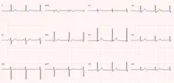 Im EKG zeigt sich ein überdrehter Linkstyp sowie S-Zacken bis V6. Der QRS-Komplex kann signifikant verbreitert sein (>120 ms).[2]