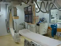 Die durchschnittliche Strahlenbelastung beträgt für den Patienten ohne Intervention ca. 2.413 cGy*cm², bei Patienten mit Intervention ca. 5.100 cGy*cm² und liegt damit typischerweise deutlich unter dem Dosisreferenzwert (DRW) für Koronarangiographien bei Erwachsenen von 6.000 cGy*cm². Das Personal muss sich wegen der täglichen Belastung unter anderem mit Bleimänteln schützen.
