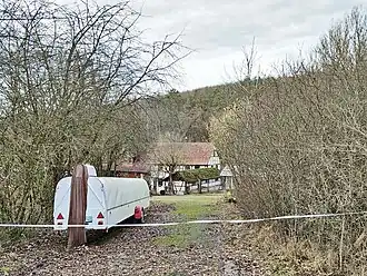 Die Einöde liegt an einem Mühlbach, der vom Fluss Milz abzweigt.