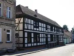 - Fachwerkhäuser aus dem 18. Jahrhundert, wie das Gebäude der Stadtbibliothek.