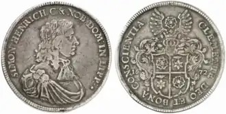 | 1658 bis 1660 | Christoph Henning Schlüter | * 1633 in Goslar, † 12. November 1688 ebenda; nacht seiner Tätigkeit in Lippe Münzmeister in Lüneburg (1660), Münzmeister in Goslar (1674 bis 1676) und Generalmünzwardein des Niedersächsischen Kreises (ab 1681)[12] |