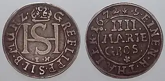 - ↑ Beschreibung des Guldengroschens bei www.coingallery.de; abgerufen am 17. März 2020