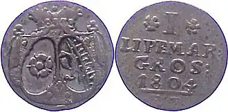 In Lemgo war die Münzstätte der Edelherren zur Lippe vom ersten Jahrzehnt des 13.[4] bis Mitte des 14. Jahrhunderts. Dazu gehörte die wichtige, sogenannte Wessele (= Wechselbank). Zunächst wurden Pfennige auf Soester und Paderborner (Brakeler) Schlag, dann nach englischem Vorbild (Sterlinge) geprägt. Weiter entstanden unter Bernhard VII. (1431 bis 1511) in Lemgo Stüber und kleinere Werte mit dem lippischen Wappen. Auch die Ausmünzung 1528 unter Simon V. erfolgte wohl in Lemgo (ältester lippischer Taler mit Bildnis und Wappen des Grafen; Hohlpfennige). Schließlich wurde hier von 1812 bis 1825 das lippische Kupfergeld hergestellt.