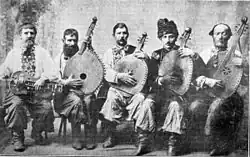 Die meisten dieser professionellen Sänger begleiteten sich auf dem gezupften Lauteninstrument kobsa oder auf einer etwas größeren bandura, andere, die sich in einer gleichermaßen randständigen sozialen Stellung befanden, spielten lira und wurden Lirnyky genannt. Lirnyky konnten christliche psalmy, historische dumky und satirische Lieder vortragen oder sich auf ein Genre spezialisieren.[23] In seltenen Fällen spielten sie in der Region Polesien auch zum Tanz auf.[24] Kobsa und lira wurden üblicherweise nur solistisch zur Gesangsbegleitung, nicht in Ensembles eingesetzt.[25] Ein Lirnyky begann üblicherweise seinen Vortrag mit einem Vorspiel auf der lira, sang daraufhin die erste Strophe unbegleitet oder nur von einem Bordunton unterlegt und setzte dies im Wechsel fort, sodass nie die Drehleier in einem melodischen Spiel zusammen mit der Gesangsstimme erklang.[26]