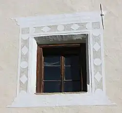Ein Raum im Erdgeschoß ist mit Stichkappen und Netzstuckgraten ausgestattet, zwei weitere Räume besitzen Wandvertäfelung und Kassettendecken aus dem 16. Jahrhundert. Im zweiten Obergeschoß befindet sich ein mit 1703 bezeichnetes Portal mit einer Supraporte, seitlichen das Schuppenpilastern und Wangen aus Akanthusranken. In der Supraporte ist ein Ovalmedaillon mit dem Wappen der Litzelhofer angebracht.