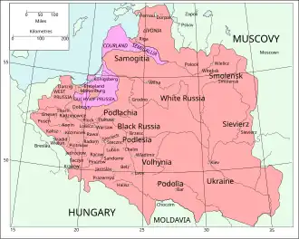- ↑ Henads Sahanowitsch: Der Eintritt des Großfürstentums Litauen in die polnisch-litauische Adelsrepublik: Weißrußland im 16. und 17. Jahrhundert. In: Dietrich Beyrau, Rainer Lindner (Hrsg.): Handbuch der Geschichte Weißrußlands. 2001, ISBN 978-3-525-36255-6, S. 93–118, hier S. 94.
